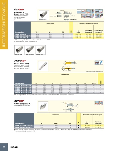 • Gli inserti nel grado ID5 sono inserti monolaterali con riporto PCD