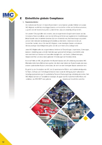 Es gehört zu den Grundsätzen der IMC, die US-amerikanischen Einfuhr- und Ausfuhrkontrollgesetze