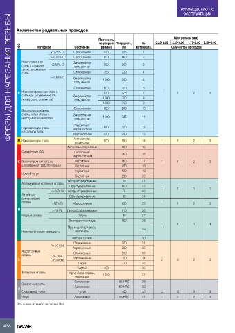 ISO      Материал           Состояние    [Н/мм ]    HB     материала.       Количество проходов