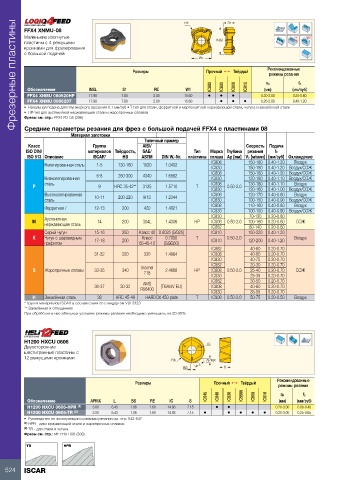 Средние параметры резания для фрез с большой подачей FFX4 с пластинами 08