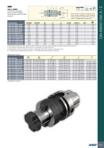 Обозначение DCONMS DCONWS BD LF LB LSCWS LSCWS_2 CDI (1) kg DIN 69893 HSK A / E