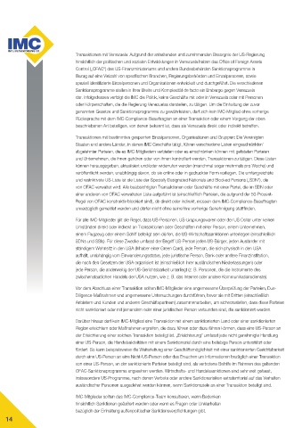 dar. Infolgedessen verfolgt die IMC die Politik, keine Geschäfte mit oder in Venezuela oder mit Personen
