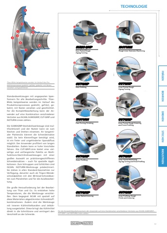 FR%u00c4SEN BOHREN DREHEN STECHEN INDUSTRIENTECHNOLOGIE3 ISCARFace Pocket Rough Zigzag TurningFace Profiling12A blisk is a turbomachine component comprised of both rotor disks and blades which are made of removable single-part blade rings. Blisks may be integrally cast, machined from a solid piece or made by welding the individual blades to a rotor disk. Each structure requires a different machining technology. ISCAR has developed a variety of substrate materials for inserts intended to machine and sustain high temperatures. Titanium blisks are used for the fan disk at the front end, while superalloy blisks are made for high temperature and pressure compressor zones.110233495678Titanium BliskUnique Chip FormersUnique Chip FormersHigh Temperatures Resistant3 ISCARFace Pocket Rough Zigzag TurningFace Profiling12A blisk is a turbomachine component comprised of both rotor disks and blades which are made of removable single-part blade rings. Blisks may be integrally cast, machined from a solid piece or made by welding the individual blades to a rotor disk. Each structure requires a different machining technology. ISCAR has developed a variety of substrate materials for inserts intended to machine and sustain high temperatures. Titanium blisks are used for the fan disk at the front end, while superalloy blisks are made for high temperature and pressure compressor zones.110233495678Titanium BliskUnique Chip FormersUnique Chip FormersHigh Temperatures Resistant4Face Turning FinishingInner Pocket Rough Grooving and Finish ProfilingInner Pocket MachiningZig Zag Turning and Finish ProfiInner Profiling, RoughFinish and GroovingOuter ProfilingOuter Radial Grooving345Rough Inner Diameter MachiningInner Pocket RoughZigzag Turning6789104Face Turning FinishingInner Pocket Rough Grooving and Finish ProfilingInner Pocket MachiningZig Zag Turning and Finish ProfilingInner Profiling, RoughFinish and GroovingOuter ProfilingOuter Radial Grooving345Rough Inner Diameter MachiningInner Pocket RoughZigzag Turning678910Face Turning FinishingInner Pocket Rough Grooving and Finish ProfilingInner Pocket MachZig Zag Turning andInner Profiling, RouFinish and GroovinOuter ProfilingOuter Radial Grooving345Rough Inner Diameter MachiningInner Pocket RoughZigzag Turning6789104Face Turning FinishingInner Pocket Rough Grooving and Finish ProfilingInner Pocket MachiningZig Zag Turning and Finish ProfilingInner Profiling, RoughFinish and GroovingOuter ProfilingOuter Radial Grooving345Rough Inner Diameter MachiningInner Pocket RoughZigzag Turning678910Face Turning FinishingInner Pocket Rough Grooving and Finish ProfilingInner Pocket MachiningZig Zag Turning and Finish ProfilingInner Profiling, RoughFinish and GroovingOuter ProfilingOuter Radial Grooving345Rough Inner Diameter MachiningInner Pocket RoughZigzag Turning678910Face Turning FinishingInner Pocket Rough Grooving and Finish ProfilingInner Pocket MachiningZig Zag Turning and Finish ProfilingInner Profiling, RoughFinish and GroovingOuter ProfilingOuter Radial Grooving345Rough Inner Diameter MachiningInner Pocket RoughZigzag Turning6789104Face Turning FinishingInner Pocket Rough Grooving and Finish ProfilingInner Pocket MachiningZig Zag Turning and Finish ProfiInner Profiling, RoughFinish and GroovingOuter ProfilingOuter Radial Grooving345Rough Inner Diameter MachiningInner Pocket RoughZigzag Turning678910Face Turning FinishingInner Pocket Rough Grooving and Finish ProfilingInner Pocket MachZig Zag Turning and Inner Profiling, RouFinish and GroovinOuter ProfilingOuter Radial Grooving345Rough Inner Diameter MachiningInner Pocket RoughZigzag Turning678910F%u00fcr die Komplettbearbeitung kann der Anwender auf eine Kombination verschiedener Vertreter aus ISCARs SUMOGRIP-, CUT-GRIP- und ISOTURN-Linien z%u00e4hlen.Standardwerkzeugen mit angepassten Spanformern f%u00fcr alle Bearbeitungsschritte. TitanBlisks beispielsweise werden im Verlauf des Produktionsprozesses gedreht, gefr%u00e4st, gebohrt, mit Nuten versehen und geschlichtet.F%u00fcr die Komplettbearbeitung kann der Anwender auf eine Kombination verschiedener Vertreter aus ISCARs SUMOGRIP, CUT-GRIP und ISOTURN-Linien z%u00e4hlen.Die SUMOGRIP-Stechdrehwerkzeuge sind multifunktionell und der Nutzer kann sie zum Stechen und Drehen einsetzen. Ihr tangentialer Plattensitz klemmt die Schneideins%u00e4tze stabil. Da kein Klemmfinger ben%u00f6tigt wird, ist ein freier und ungehinderter Spanabfluss m%u00f6glich. Der Anwender profitiert von langen Standzeiten. Zudem kann er hohe Vorsch%u00fcbe fahren. Die CUT-GRIP-Linie bietet eine vielseitige und umfangreiche Palette an Multifunktions-Stech-Drehwerkzeugen mit einer gro%u00dfen Auswahl an pr%u00e4zisionsgeschliffenen Schneideins%u00e4tzen %u2013 auch f%u00fcr spezielle Applikationen. Zum Schruppen und Schlichten sind ISCARs ISOTURN-Werkzeuge pr%u00e4destiniert.Sie stehen in allen Standard-Geometrien zur Verf%u00fcgung, darunter auch als Trigon-Wendeschneidplatten mit drei 80-Grad-Schneidkanten zum Plandrehen und f%u00fcr die Axialbearbeitung.Die gro%u00dfe Herausforderung bei der Bearbeitung von Titan und Co.: Es entstehen hohe Temperaturen, die die Werkzeuge verschlei%u00dfen. Dem begegnet ISCAR mit speziell auf diese Materialien abgestimmten Schneidstoffkombinationen. Zudem sind die Werkzeuge mit inneren K%u00fchlmittelkan%u00e4len und Jetk%u00fchlung ausgestattet. Diese bringt das K%u00fchlmittel direkt in die Schnittzone und verringert den Verschlei%u00df an der Schneide.Titan-Blisks beispielsweise werden im Verlauf des Produktionsprozesses gedreht, gefr%u00e4st, gebohrt, mit Nuten versehen und geschlichtet. 51